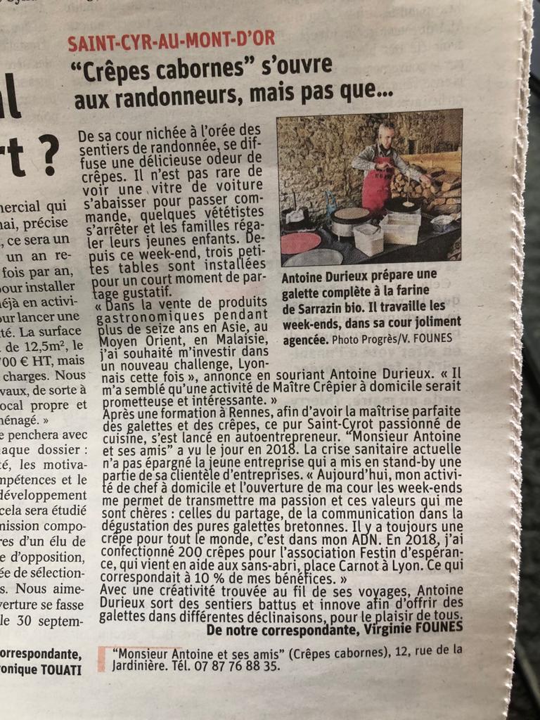 Article du journal Le Progrès à Lyon : Monsieur Antoine et ses Amis – La Crêperie des Cabornes – La Crêpe Solidaire 31 août 2021 Monsieur Antoine